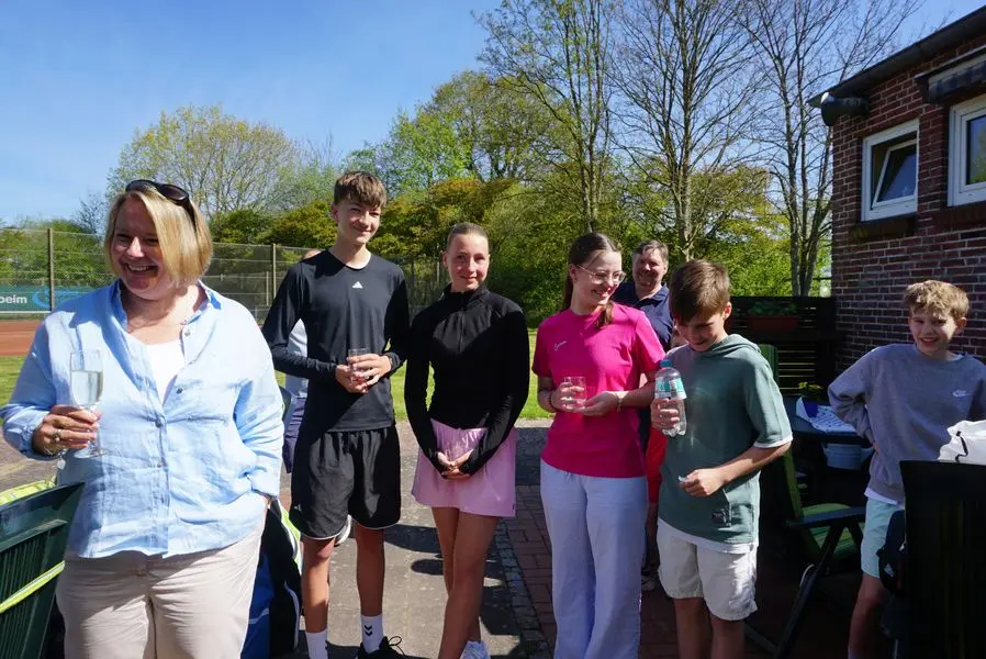 Am 1. Mai, bei bestem Tenniswetter, haben wir unsere Saison eröffnet. Der neue Vorsitzende, Andreas Köhler, begrüßte alle Anwesenden mit freundlichen Worten. Die 28 Mitglieder, Trainer und Gäste hatten gute Laune und freuten sich auf die ersten Tennisspiele. Sehr erfreulich war auch, dass sich ehemalige Spieler und Ältermänner/Frauen zum Saisonstart eingefunden hatten. Bei der Übergabe der Plätze durch unseren Platzwart Dieter Raube wurde noch einmal erwähnt, dass die Zeit der Eigeninitiative bei der Platzherstellung vorbei sei. Das erste Mal waren die Plätze durch einen Unternehmer fit für die Saison gemacht worden. Auch gab er bekannt, dass er sich zum Jahresende 2025 von der Aufgabe des Platzwartes zurückziehen wird. Ein Nachfolger wird gesucht. Zur Saisoneröffnung stellte die Tennisschule Möller das neue Trainerteam vor. Nach dieser Begrüßung durfte es endlich losgehen. Wie auf den Bildern zu erkennen ist waren die Tennisspieler voller Freude endlich wieder unter freiem Himmel die gelbe Kugel bewegen zu können. Ein leckeres Kuchenbüfett rundete diesen herrlichen Saisonstart ab.