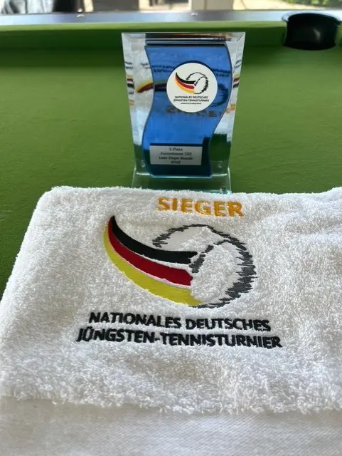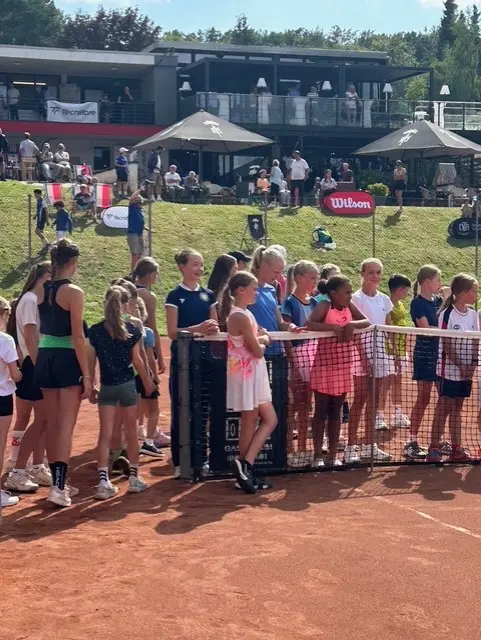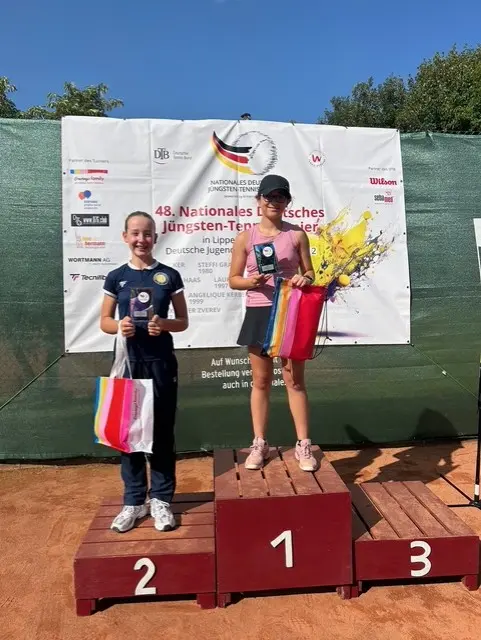 Zu den feierlichen Klängen der deutschen Nationalhymne und in zeremoniellem Rahmen nahm Claire ihren Pokal auf dem Siegertreppchen entgegen. Zuvor hatte sie im Finale gegen Klara-Lan Tran Tien aus Viersen mit 1:6 und 2:6 verloren. „Das war im Tennis das Aufregendste, was ich bisher erlebt habe“, strahlte die Kappelnerin trotz der Niederlage. „Wir spielen sonst meist nur vor Eltern und müssen selbst Schiedsrichter sein. Vor so vielen Zuschauern und mit Stuhlschiedsrichter – das werde ich nie vergessen.“